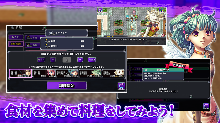 食材を自由に選んで作る「創作料理」とレシピ通りに作る「レシピ料理」の2種類があるぞ!